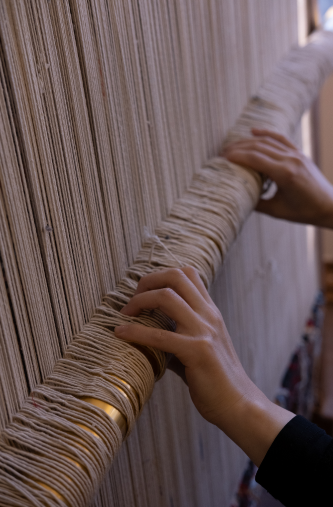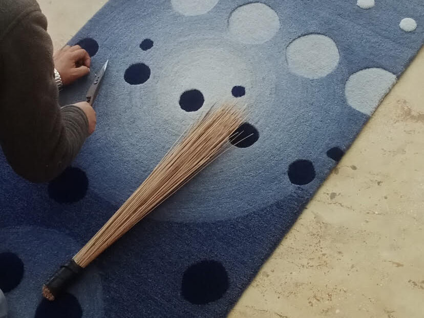 De la teinture des fils, jusqu’au tissage de chaque nœud, les tapis 55 CLOUD sont uniquement réalisés à la main, tufté ou noué main.